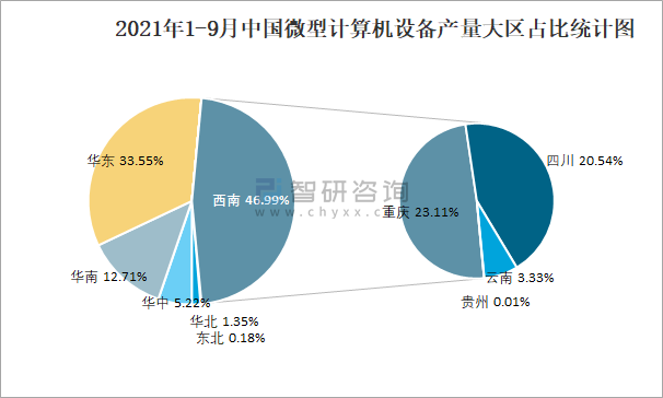 2021年1-9月中國微型計算機設備產量大區占比統計圖