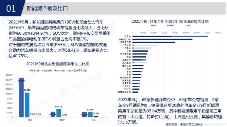 近幾年國家大力扶持新能源,在生產端與消費端均給予了各種力度的優惠政策,再加上新能源技術不斷成熟,2021年9月產銷了35萬輛以上新能源汽車,新能源汽車市場份額大幅度增長。