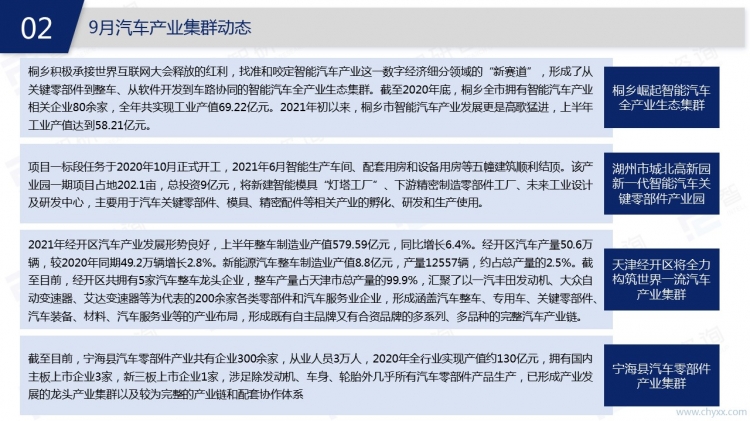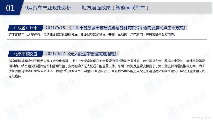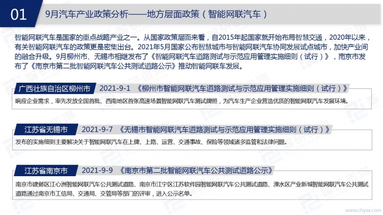 隨著人民生活水平的不斷提升,汽車已經走進千家萬戶。在我國的汽車市場上,汽車產能相對穩定,除了能滿足國內汽車消費需求,還能提供少量出口。2021年9月汽車相關政策主要集中在新能源汽車和智能網聯車市場,自動駕駛解決方案是汽車領域投融資熱點。