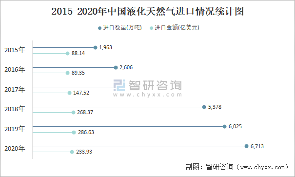 根據中國海關數據顯示:2015-2020年中國液化天然氣進口數量逐年遞增,進口金額2019年達到最大值,此后有所下降;2015-2020年中國液化天然氣進口平均單價2018年增長速度最快,并達到最大值,而2020年中國液化天然氣進口平均單價下降速度最快,下滑了26.8%。