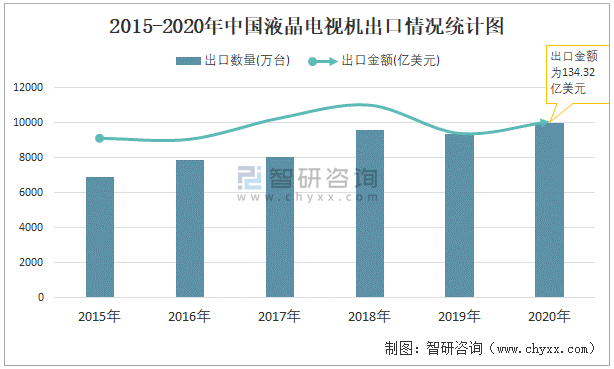 2015-2020年中國(guó)液晶電視機(jī)出口情況統(tǒng)計(jì)圖