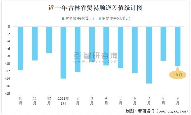 近一年吉林省貿易順逆差值統計圖