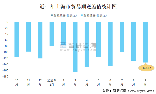 近一年上海市貿(mào)易順逆差值統(tǒng)計圖