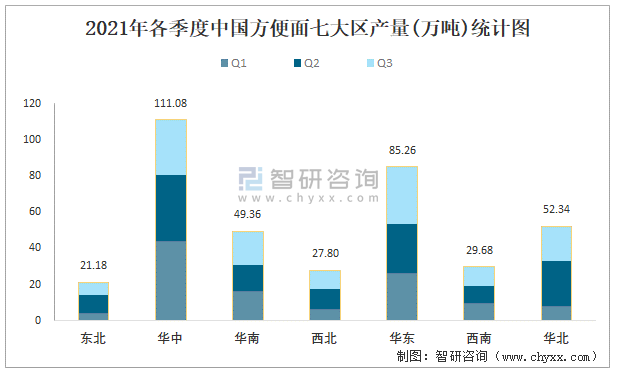 2021年1-9月中國方便面產量為376.7萬噸 華中地區產量最高(占比29.49%)