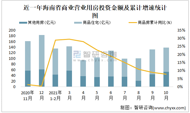 根據國家統計局數據統計可知:2021年9月海南省房地產開發投資商品房投資金額為138.48億元,其中包括辦公樓、商業營業用房等其他用房52.49億元(注:辦公樓、商業營業用房未分開統計);2021年1-10月海南省房地產開發投資包括商業營業用房在內的其他用房累計金額為362.19億元。