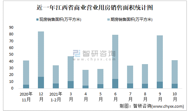 根據國家統計局數據可知:2021年9月江西省商業營業用房銷售面積為41.49萬平方米(其中銷售現房6.67萬平方米,期房34.82萬平方米);2021年1-10月江西省商業營業用房累計銷售面積為405.01萬平方米;近一年江西省商業營業用房期房銷售面積遠高于現房銷售面積。