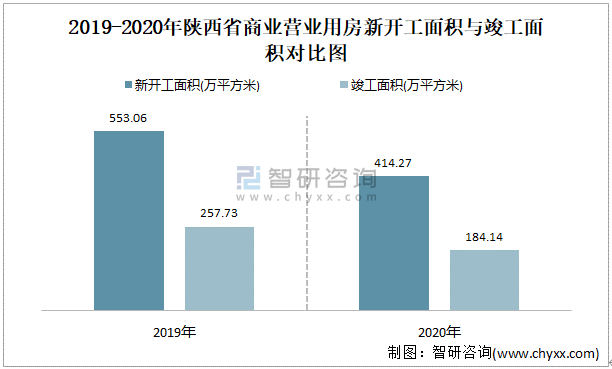 2019-2020年陜西省商業營業用房新開工面積與竣工面積對比圖