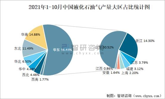 2021年1-10月中國液化石油氣產量大區占比統計圖