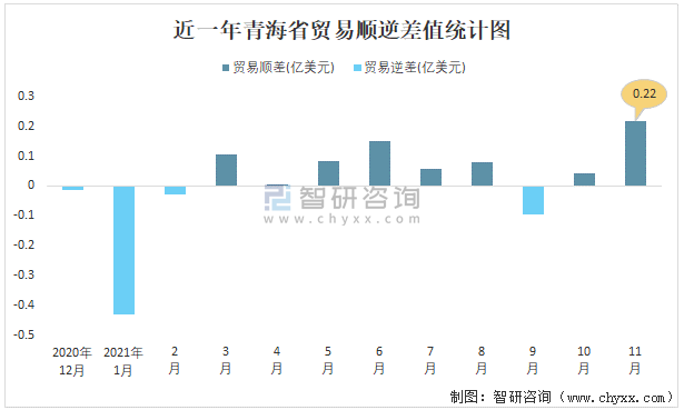 2021年1-11月青海省進出口總額為4.2億美元,累計同比增長43.1%