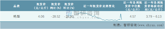 根據(jù)農(nóng)村農(nóng)業(yè)部數(shù)據(jù)統(tǒng)計(jì)可知:2022年第1周全國(guó)鴨梨平均批發(fā)價(jià)為4.06元/公斤,同比下跌28.52%,環(huán)比下跌28.9%,2021年年末鴨梨價(jià)格出現(xiàn)了一個(gè)小高峰,此后快速回落,近一年全國(guó)鴨梨平均批發(fā)價(jià)最高達(dá)到6.13元/公斤,批發(fā)價(jià)最低也要3.79元/公斤。