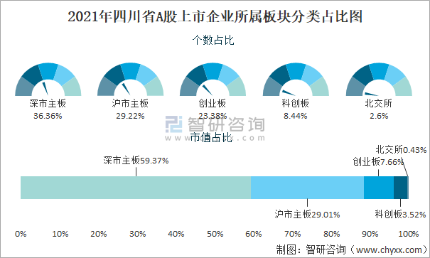 2021年四川省A股上市企業所屬板塊分類占比圖