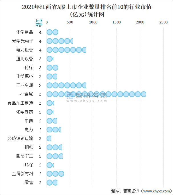 2021年江西省62家A股上市企業總市值9019.2億元,化學制品行業上市企業最多