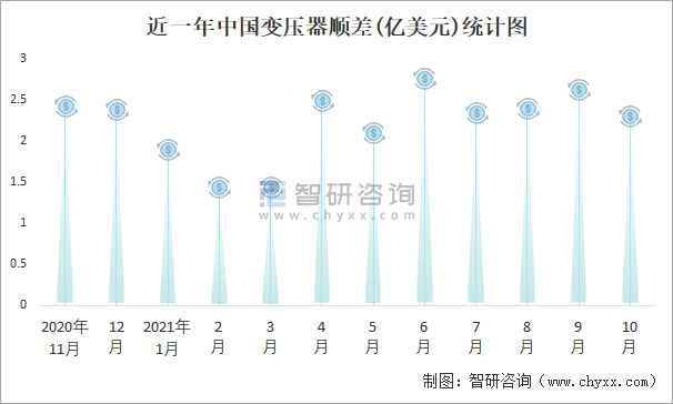 根據(jù)中國(guó)海關(guān)數(shù)據(jù)顯示:近一年中國(guó)變壓器進(jìn)口金額總體小于出口金額,進(jìn)出口貿(mào)易全部為順差,順差規(guī)模存在不同幅度的波動(dòng),10月順差規(guī)模有所縮減。
