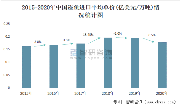 根據中國海關數據顯示:2015-2020年中國凍魚進口數量與進口金額均在2019年達到最高值,此后小幅度下滑;2015-2020年中國凍魚進口平均單價2018年增長速度最快,而2020年中國凍魚進口平均單價下降速度最快,下滑了8.5%。