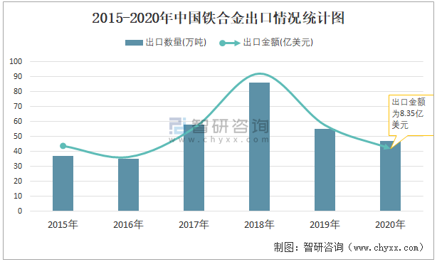 2015-2020年中國(guó)鐵合金出口情況統(tǒng)計(jì)圖