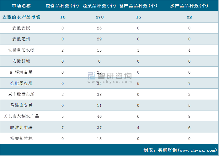 2022年1月13日安徽農產品批發市場品類詳情統計表