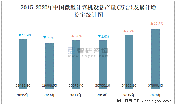 2015-2020年中國微型計算機設備產量及累計增長率統計圖