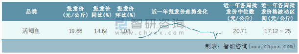 根據(jù)農(nóng)村農(nóng)業(yè)部數(shù)據(jù)統(tǒng)計(jì)可知:2022年第3周全國活鯽魚平均批發(fā)價(jià)為19.66元/公斤,同比增加14.64%,環(huán)比增加1.08%,近一年全國活鯽魚平均批發(fā)價(jià)最高達(dá)到25元/公斤,批發(fā)價(jià)最低也要17.12元/公斤。