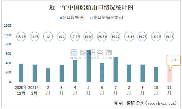 近一年中國船舶出口情況統(tǒng)計圖