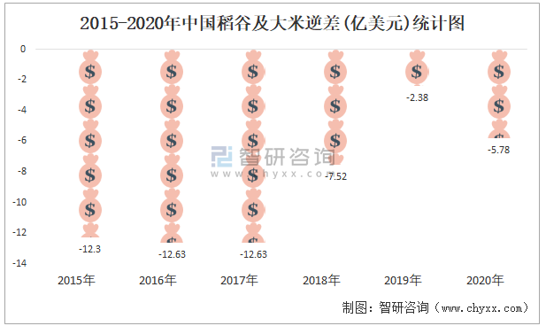 2015-2020年中國稻谷及大米逆差(億美元)統(tǒng)計(jì)圖