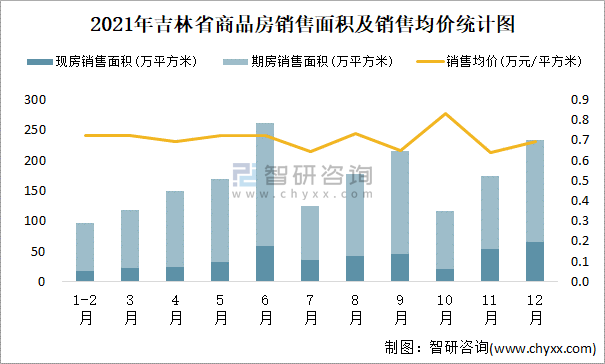 2021年吉林省商品房銷售面積及銷售均價統(tǒng)計圖