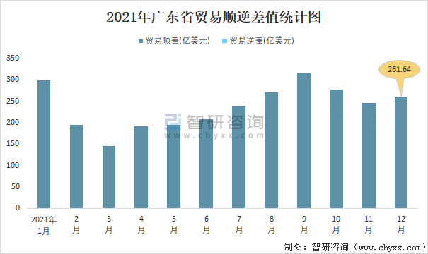 2021年廣東省貿(mào)易順逆差值統(tǒng)計圖