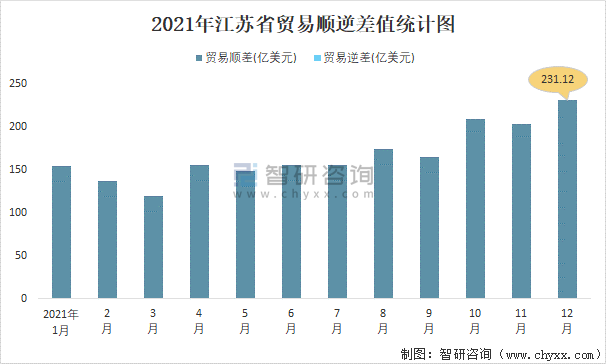 2021年江蘇省貿易順逆差值統計圖