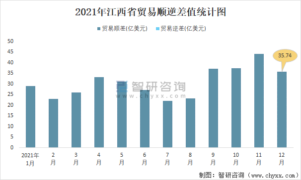 2021年江西省貿(mào)易順逆差值統(tǒng)計圖
