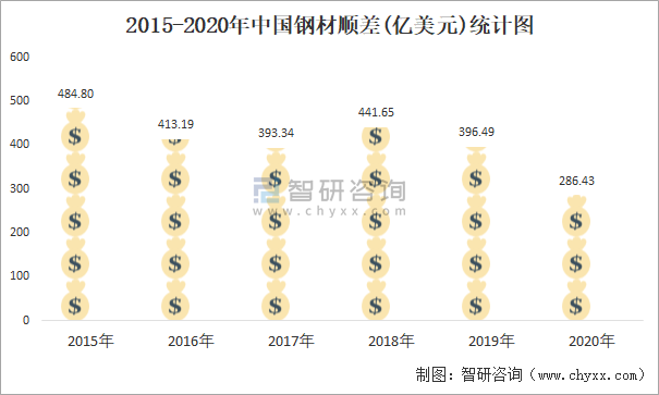 2015-2020年中國鋼材順差(億美元)統(tǒng)計圖