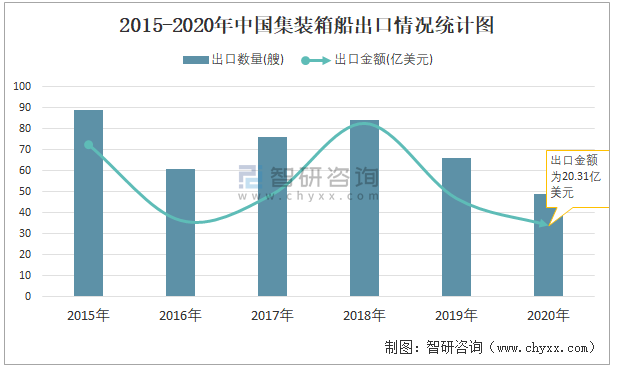 根據中國海關數據顯示:2015-2020年中國集裝箱船出口數量與出口金額2018年起均逐年遞減;2015-2020年中國集裝箱船出口平均單價2018年增長速度最快,并達到最大值,而2019年中國集裝箱船出口平均單價下降速度最快,下滑了28.1%。