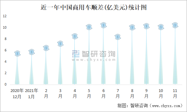 近一年中國商用車順差(億美元)統(tǒng)計圖