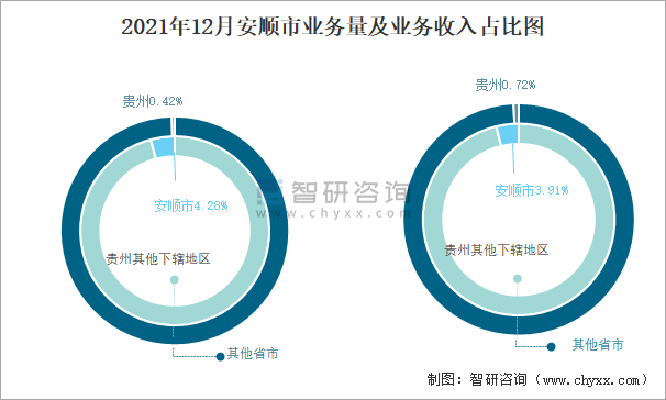 2021年12月安順市業(yè)務(wù)量及業(yè)務(wù)收入占比圖