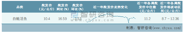 根據農村農業部數據統計可知:2022年第7周全國白鰱活魚平均批發價為10.4元/公斤,同比增加16.59%,環比下跌3.53%,近一年全國白鰱活魚平均批發價最高達到12.36元/公斤,批發價最低也要8.7元/公斤。