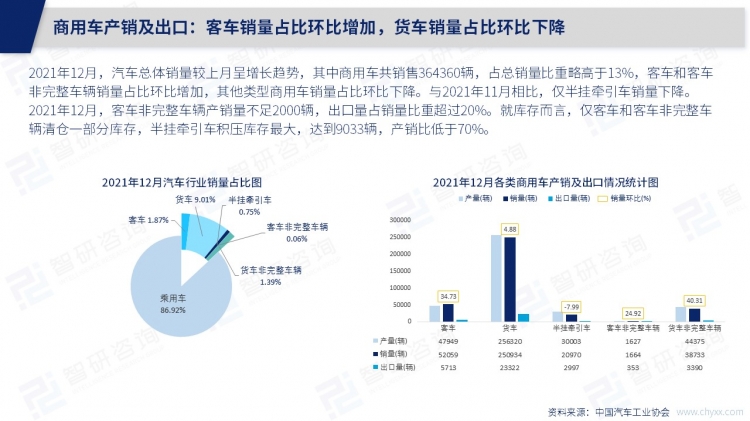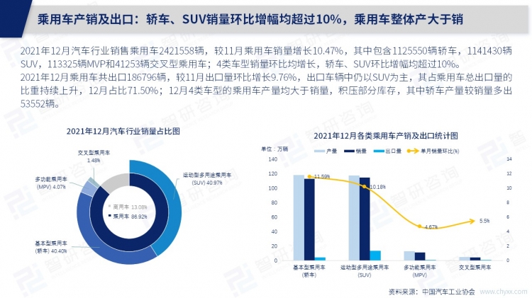 2021年12月,中國(guó)汽車市場(chǎng)迎來(lái)全年產(chǎn)銷量最高峰,以滿足年底爆發(fā)的消費(fèi)需求,其12萬(wàn)多輛的庫(kù)存也成為了2021年全年單月積壓值高峰,比2021年11月積壓的庫(kù)存還多出了5.8萬(wàn)多輛,依照以往汽車消費(fèi)市場(chǎng)規(guī)律,2022年上半年汽車產(chǎn)量大概率會(huì)有所縮減,以清理庫(kù)存為主。