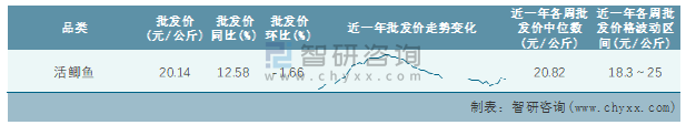 根據(jù)農(nóng)村農(nóng)業(yè)部數(shù)據(jù)統(tǒng)計(jì)可知:2022年第8周全國(guó)活鯽魚平均批發(fā)價(jià)為20.14元/公斤,同比增加12.58%,環(huán)比下跌1.66%,近一年全國(guó)活鯽魚平均批發(fā)價(jià)最高達(dá)到25元/公斤,批發(fā)價(jià)最低也要18.3元/公斤。