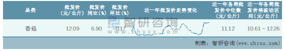 根據農村農業部數據統計可知:2022年第8周全國香菇平均批發價為12.09元/公斤,同比增加6.9%,環比下跌0.17%,近一年全國香菇平均批發價最高達到12.26元/公斤,批發價最低也要10.61元/公斤。