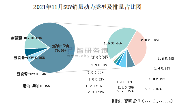 2021年11月SUV銷量動(dòng)力類型及排量占比圖
