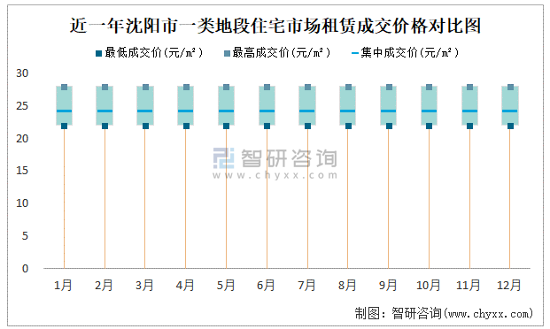 近一年沈陽市二類地段住宅市場租賃成交價格對比圖