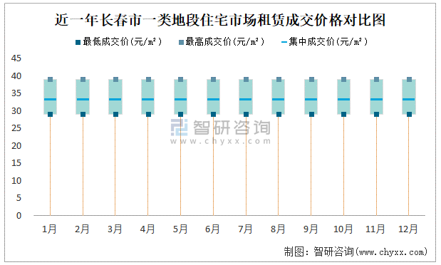 近一年長(zhǎng)春市商業(yè)用房租賃成交價(jià)格對(duì)比圖