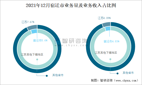 2021年12月宿遷市業務量及業務收入占比圖