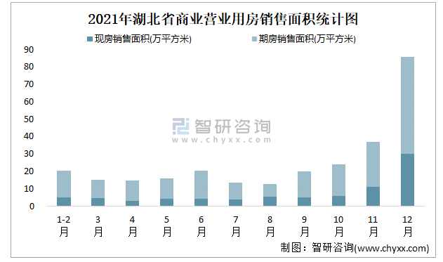 根據國家統計局數據可知:2021年湖北省商業營業用房銷售面積為277.95萬平方米(其中銷售現房81.56萬平方米,銷售期房196.39萬平方米),2021年12月湖北省商業營業用房銷售面積為85.65萬平方米;2021年湖北省商業營業用房期房銷售面積遠高于現房銷售面積。